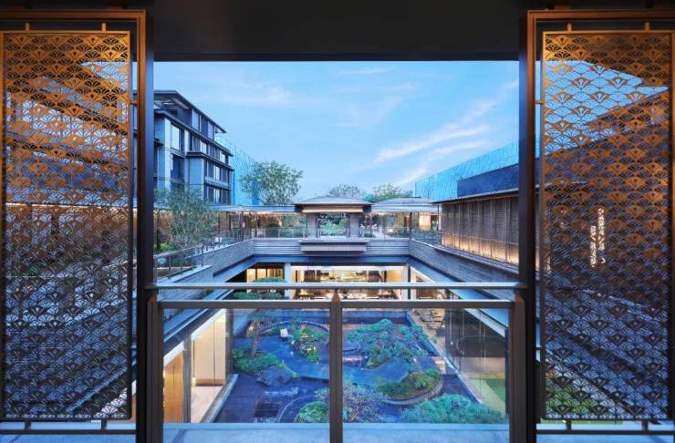 > > 设计巧思上,项目深谙“引水入园、借景成趣”之道,将钱直河公园的静谧水岸风光巧妙引入园境,实现内外景致交融共生,延续并升华了“庐系”标志性的隐逸美学与现代东方设计语言。 > > 咏月望庐更深植“在地文化”与“当代精神”,凝练“月”之魂魄、“潮”之韵律,精心构筑六重情境归家动线。同时,甄选名贵石材、全冠移植名木、定制艺术雕塑等收藏级元素铺陈于细节之中,前所未有地彰显出“庐系”产品卓然的艺术价值与蓬勃的自然生命力。