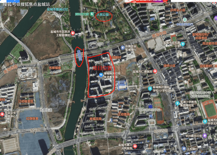 项目北侧是人民公园,西侧是串场河,环境比较好。拿地的时候,普遍认为是盐城一块压箱底的核心地块。实际开盘后,当地人并不认可这个位置,周边老旧小区多,学区并不好。
