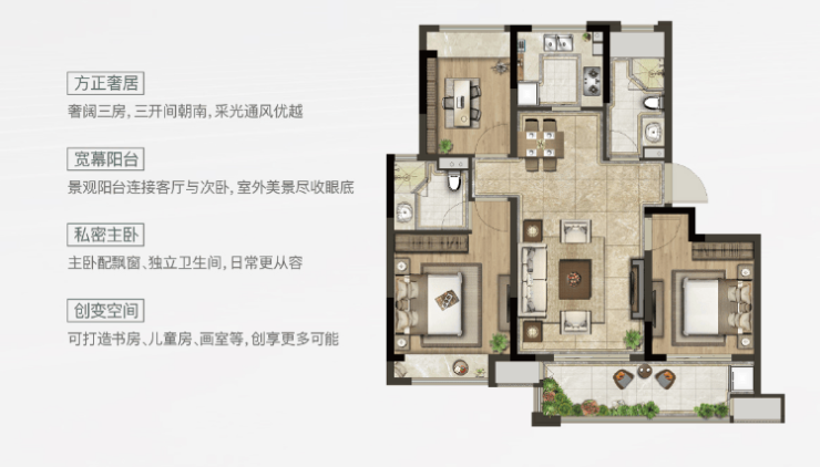 在售有6栋6层洋房产品,建筑面积约95平方米;也是当下市场独有的小三房洋房,3米的层高,楼间距宽阔,采光充足,部分一楼自带院子,当下首批开盘房源单价7字头起,就能买得到市场上超高性价比洋房。