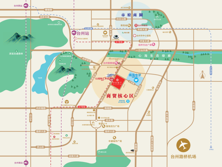 商贸核心区•S1汇丰路站口•镇海中学(台州分校)旁