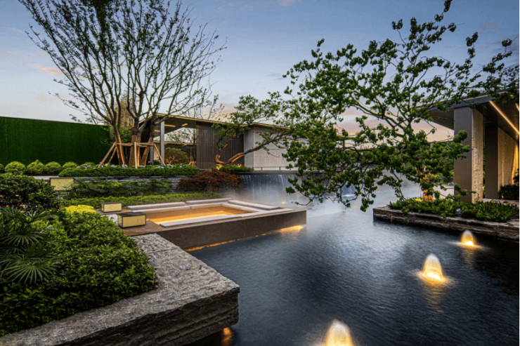 定位“云尚都市 秘境花园”通过六境六景自然围合式归家体验,精著凤山壁景墙、价值约30万元罗汉松、烟雨台、风雅厅……阐释城市花园氛围。