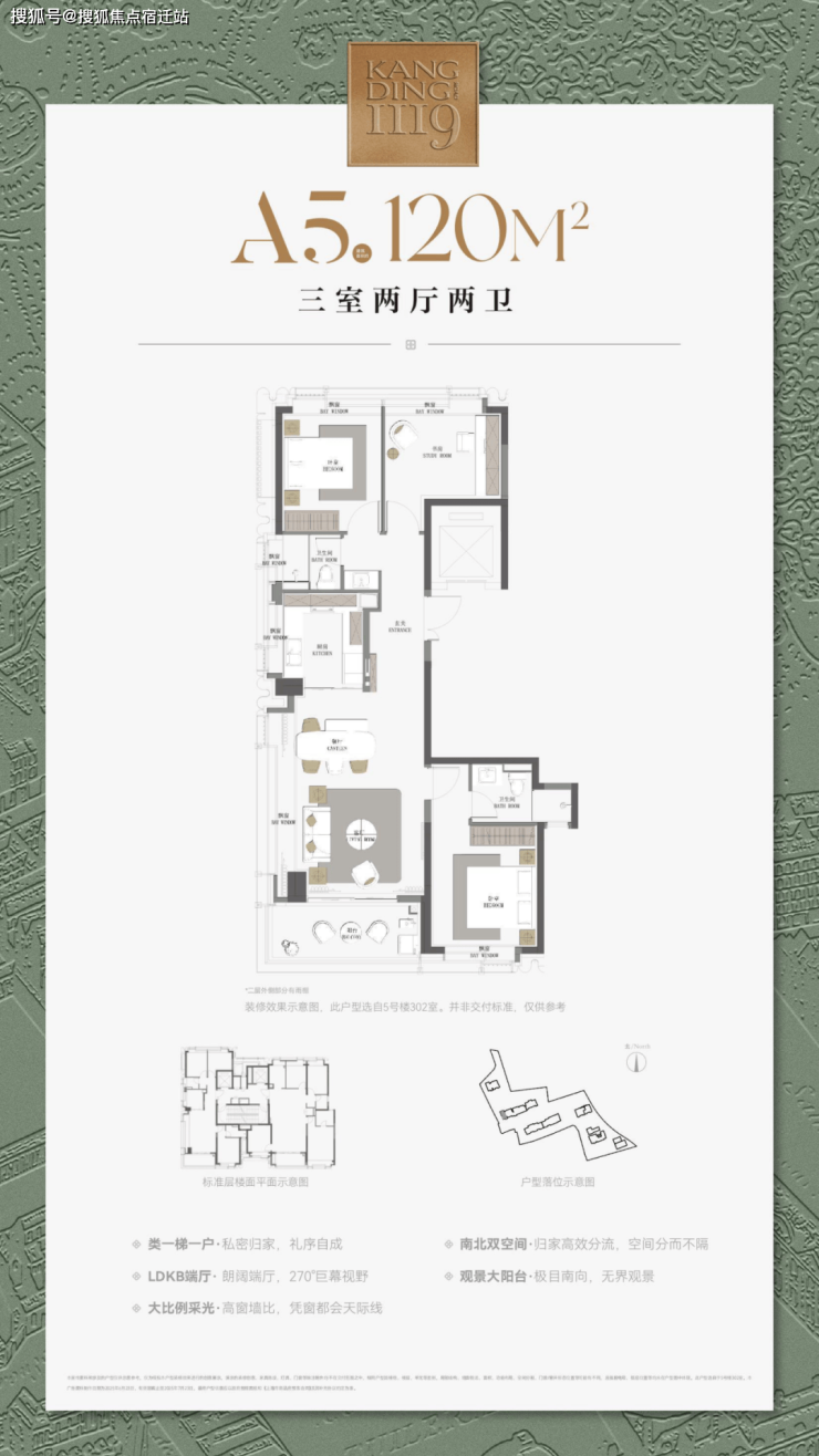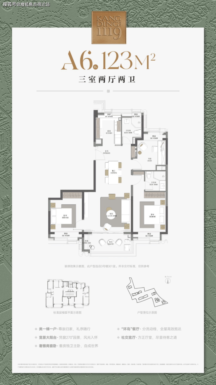 最重要的是,康定壹拾玖这建面约177㎡4房不仅仅是方正,更是飞机户型,三开间朝南+南北通透+无走道的浪费,整个户型相当正气。