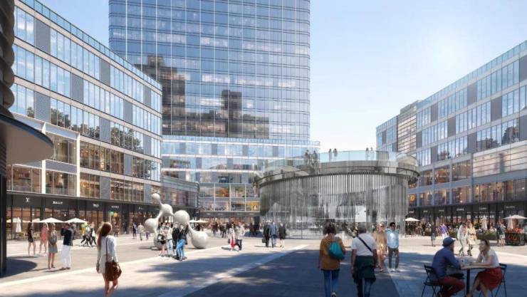 【时尚立面】:项目外立面采用玻璃幕墙设计,以简约线条精细化设计,体现前沿时尚质感,打造新一代综合体和街区的摩登封面。