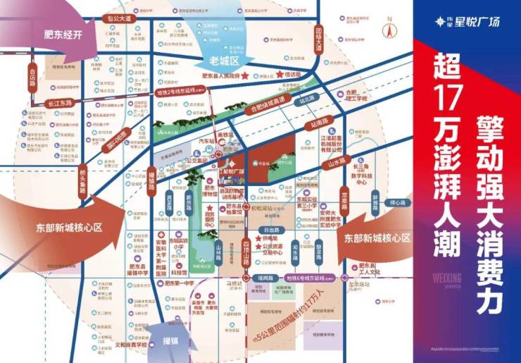 【澎湃人潮】:高端社区环伺,企事业单位合围,辐射和睦湖新区、肥东老城区、经开区等,汇聚约17万+海量客流,撬动东城大财富。