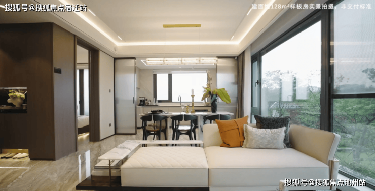 步入户型内部,堪称惊艳的则是大尺度餐客横厅,搭配高级感满满的全景落地窗,让空间真正成为了“光的容器”。