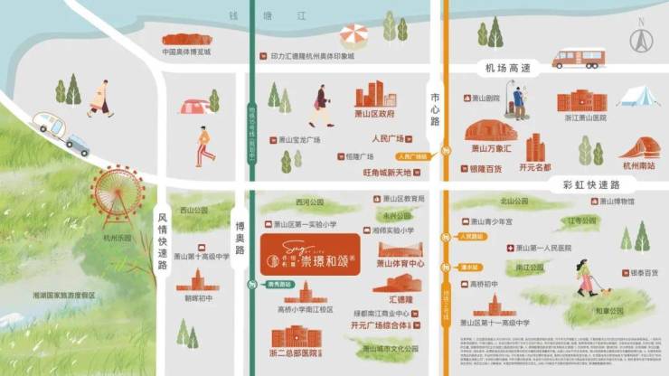 项目3KM生活圈内,开元广场、恒隆广场、万象汇、旺角城新天地等醇熟商圈环绕;朝晖初中、湘湖附小、高桥初中、萧山第一实验小学等全龄段学府环伺左右(具体教育资源以主管部门意见为准)。周边更有萧山体育中心等,及堪比西湖的湘湖景区,全面完善的配套资源,让改善更入心。