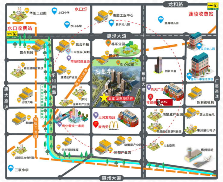 一空港:距项目十分钟路程是惠州机场;