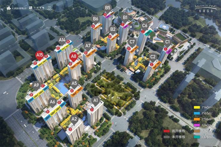 总建面约38万方,以复合型社区规划,包含大平层住宅、商业MALL等业态,打造一座崭新时代的活力坐标,形成一站式的城市生活解决方案。