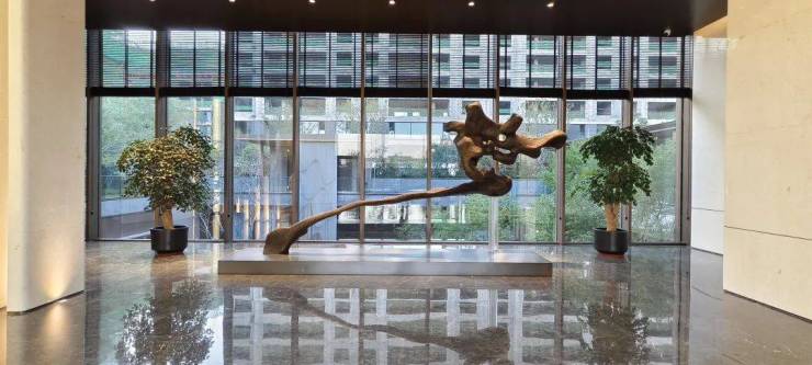 入户大门使用普拉达绿和温德姆灰石材、金属和玻璃,这种设计属于具有普适性的“老钱风”。