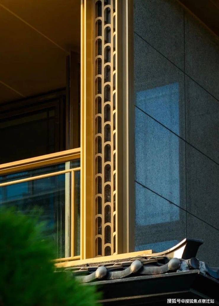 三重屋檐,代表天地人融合的东方宫殿最高等级,上檐、外檐、下檐三重结构,现代立面,以铝板、格栅、石材、瓦墙型材、玻璃等现代型材,彰显传世之宅的独特气度。摒弃早期中式建筑的白墙黑瓦,精研居住建筑的材质与色彩搭配,注重冷暖的多重对比。中式建筑的立面呈现出的不是粉墙黛瓦,而是「宋韵五色」。