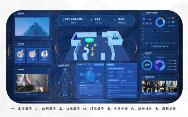 健康促进中心:配有24小时便利店、银行、药店、食堂、多功能教室、棋牌室、健身房、护理院等各类设施功能。
