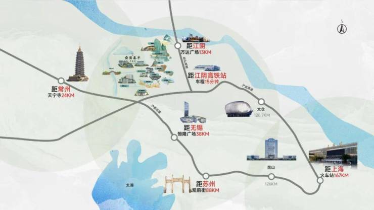 距离江阴市中心约13km,开车约15min可达。