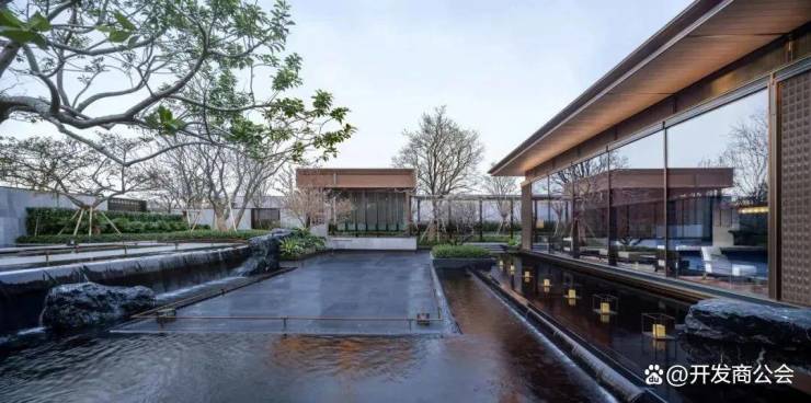 在中国传统文化中,水对于住宅而言十分重要,礼仪空间结合水景突出仪式感,承载东方的传统文化精神。