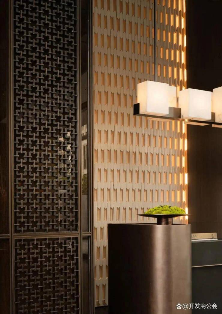 古人言“宅以门户为冠带”,门是一种礼仪制度的象征,更是宅第品格修养的表现。海上瑧悦,单元门头整体和小区入口大堂呼应,两侧采用大象灰石材哑光面和拉槽面,门头金属条纹的细密程度拿捏地恰到好处,在细节和光影设计上做了整体东方格调的把控,层次细腻、典雅大方。
