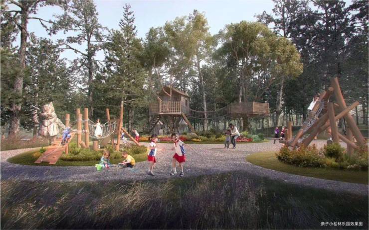 小松林乐园占地10余亩,因地制宜,在保留原生态松林的基础,遵循地貌特征,巧妙设计功能空间;含原木游乐设施、霍比特人小屋、沿湖帐篷野营地、三只熊浪漫花园、自然课堂空间等,让孩子在撒欢的同时,充分感受大自然的奥妙;三只熊浪漫花园更是参照《三只熊》打造小屋和浪漫花园,是孩子开生日派对、宴请朋友聚会的更佳场所。