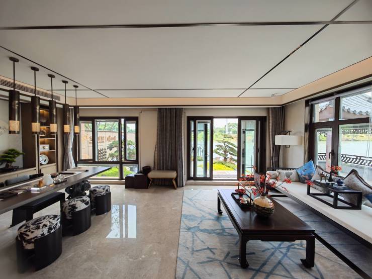 约6.6米挑高会客厅,饱览一派湖山气度,待客大气尊贵