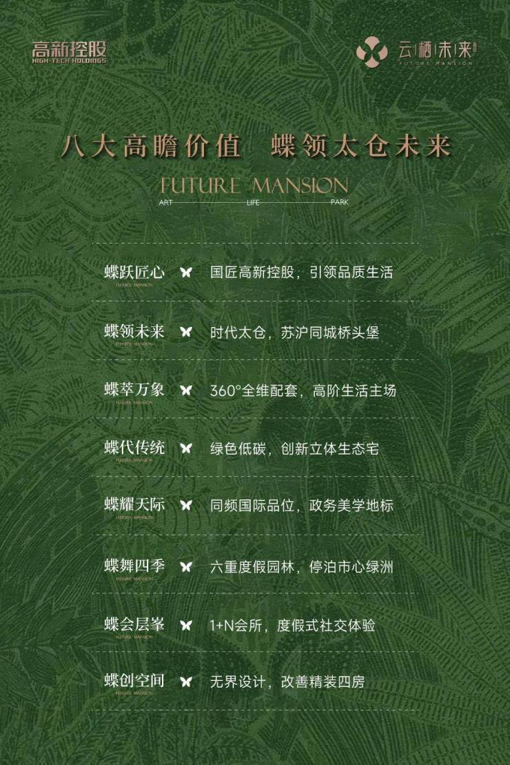 太仓高新控股,本土领军国企。32载深耕太仓,笃定建设、运营城市使命,多元布局,与太仓共奋进。截至当前,已投资开发含自操盘在内的约20个地产开发项目,矢志成为太仓品质生活领跑者。