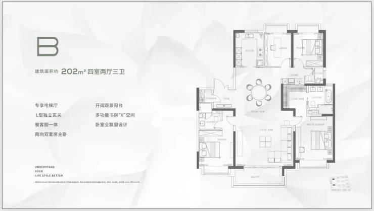 M+科技体系:首创M+科技体系,以智慧、健康、精工、生态四大体系,赋予空间美好的体验与品质,每一寸细节皆为生活悉心定制。