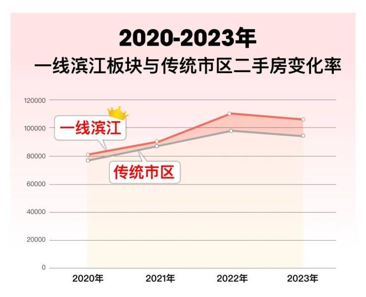 从2020-2023年,不管是从如何变化,一线滨江区域始终是更昂贵、更抢手的区域。