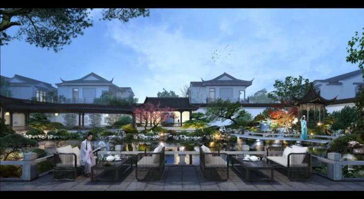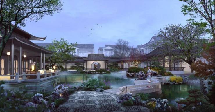 项目传承蓝城春风系高端作品精髓,以江南传统水岸生活场景为筑造蓝本,打造由159户中式合院组成的低密高阶院墅住区。