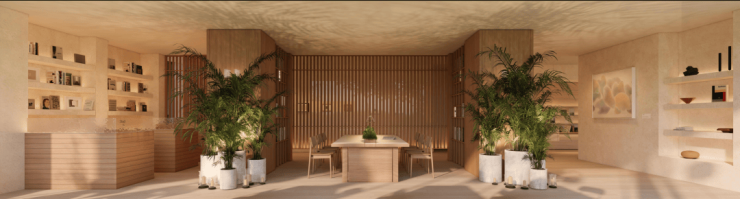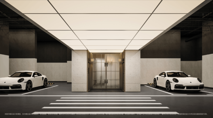 项目地库的设计以雅奢、明亮为主题,结合天幕光厅形成地下泛大堂,营造酒店度假感的归家体验。
