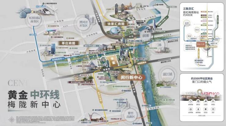 板块潜力方面,早前,闵行2035规划全新公布,梅陇地区也再次被提上日程——中部地区被定位为“闵行新中心”,规划范围东至景洪路、南至银都路、西至梅富路、北至梅南路-春申塘,总用地面积约118万㎡!
