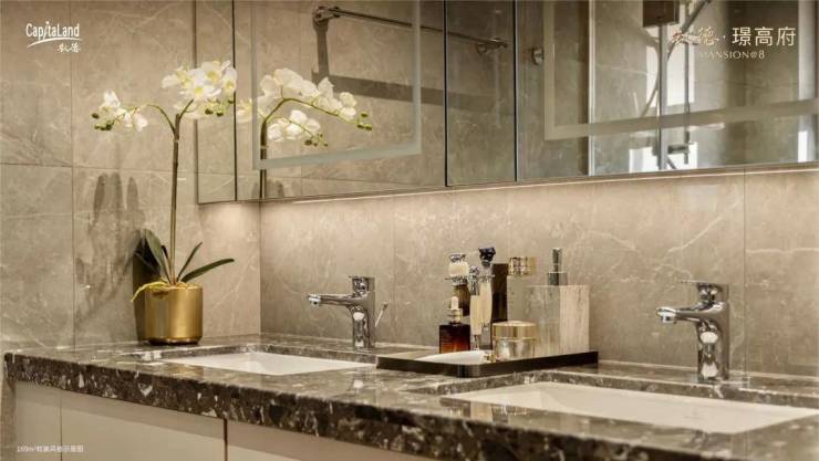 室内空间,从客厅到卧室、从厨房到卫浴,日立、唯宝、菲斯曼、恩美特等品牌加持,还有地暖、新风系统、中央空调三大豪宅级奢配,全屋大牌臻装,4000元/㎡装标,大写“值得”。