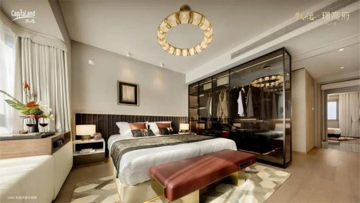 甚至,在一些微小细节上凯德也是极为用心。比如:每个房间的门把手是如意锁,真皮如意造型门锁,寓意每天手握如意,事事如意。又如,专门定做古铜色铝合金踢脚线,以及“玉树琼枝墙”采用金色的树枝花纹,寓意玉树临风、开枝散叶等等,用流光溢彩来形容也不为过。