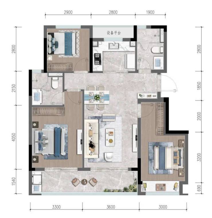洋房顶跃A'户型(建面约138方)双层豪华复式/尊享主卧丨餐客厅一体化丨宽阔阳台