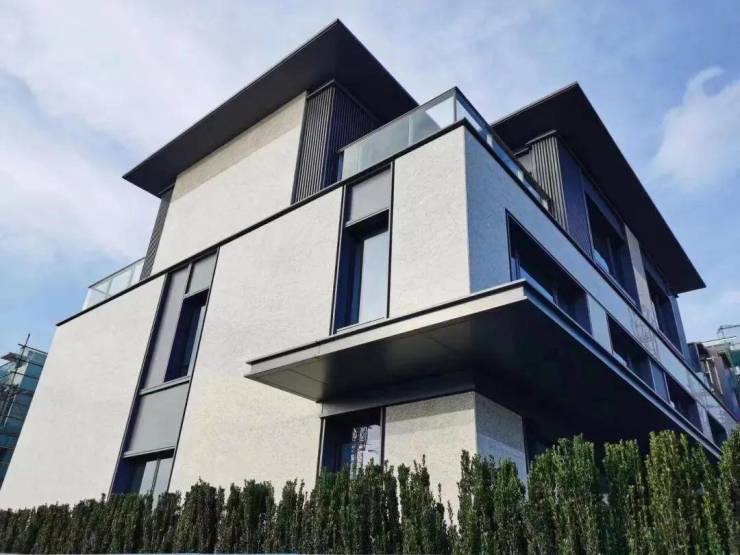 联排别墅新亚洲风格,外立面结合了石材、铝板和玻璃幕墙,简约大气、历久弥新的同时,也让起居空间保证了充足的透光率!