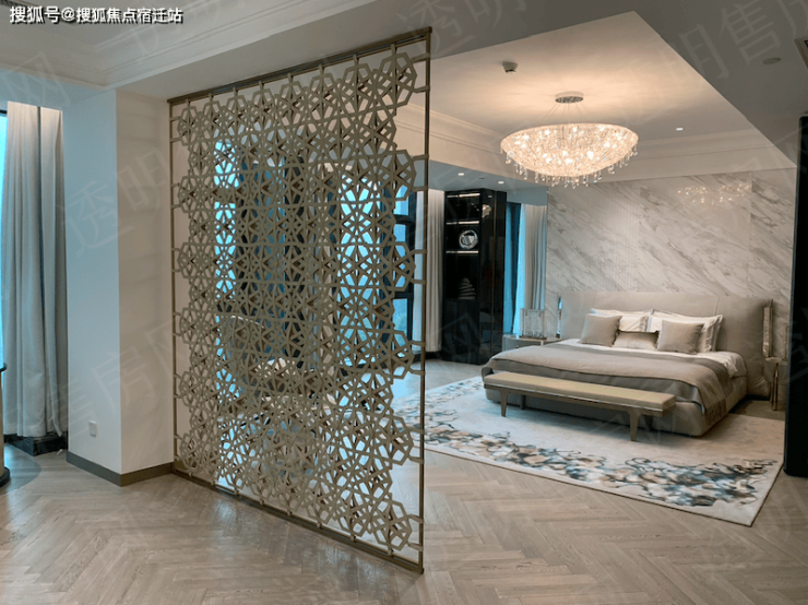 其内部装修极其华丽,其中在115方的主卧,面向朝南的观江景观面都达到了9.6米。