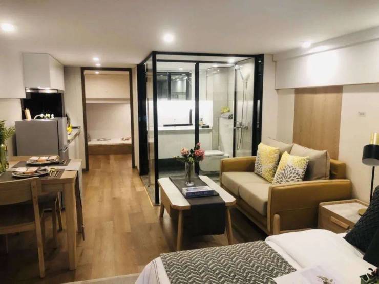 对于正在创业的客户来说,约41㎡双钥匙公寓也具有更大实用性:楼上用于居住,楼下可用作工作室等等;或者将一楼专门打造成为一个茶室、客厅用来工作或者与好友聚会。空间灵活多变,功能自在随心!