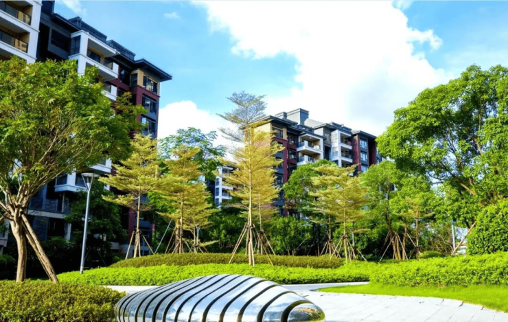 站在金裕星河丹堤三期南向高层阳台上,眼前展开的是一幅现代社区与自然交融的画卷——超1.4万㎡星象乐园景观园林如绿毯铺展,儿童活动区的欢声笑语隐约可闻,远处高铁惠州北站的列车正缓缓驶出站台。