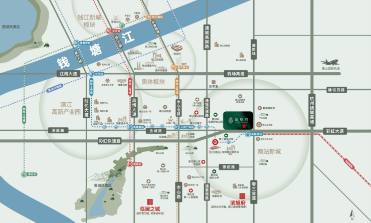 幸会滨奥枢纽 澎湃下一个城市中芯:一横一轨一枢纽三纵,三维立体路网,同频都市万千精彩,盛逢杭州亚运时代,城市交通骨架不断舒展,彩虹快速路、地铁5号线姑娘桥站、杭州南站三足鼎立,托起了杭州未来的城市封面坐标——滨奥枢纽的快速发展,迸发出全新生命力。翠栖府择址其上,先享滨奥枢纽芯超能级价值,领潮时代人居新生。
