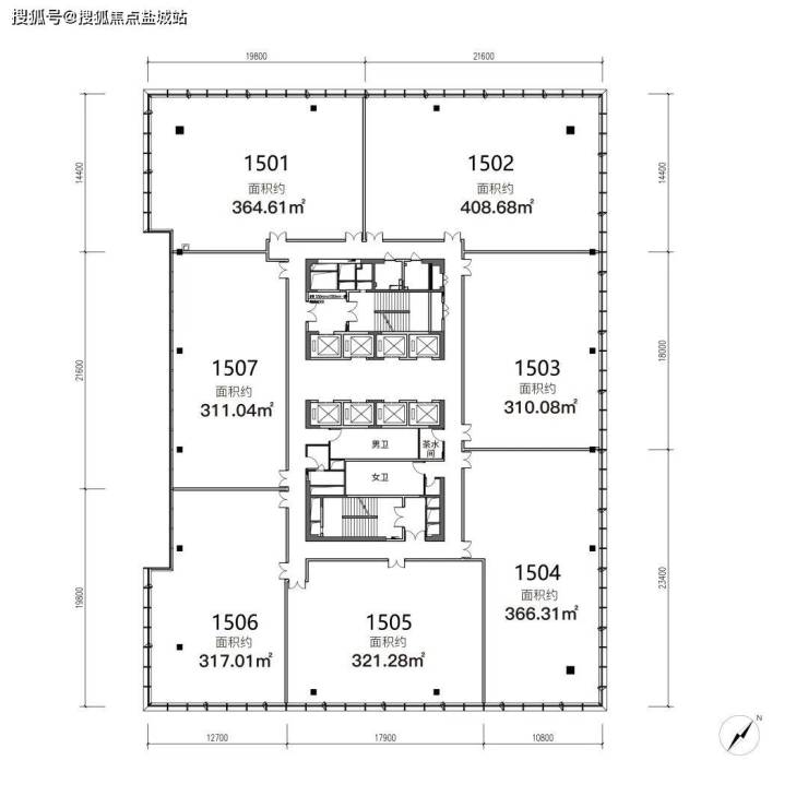 每栋配置7部客梯、2部转换梯、1部消防梯,单梯服务面积不足4000㎡,超甲顶级写字楼标准,无感识别技术派梯