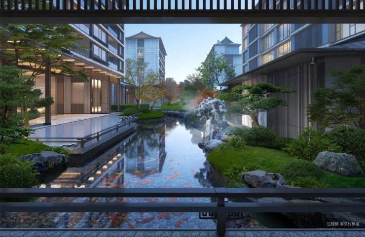 巨大的锦鲤池更是将恢弘的“中式气场”拉满,道法自然、天人合一的设计理念,让人仿佛来到了红楼梦中的大观园,满目都是沉浸式的生活叙述感。