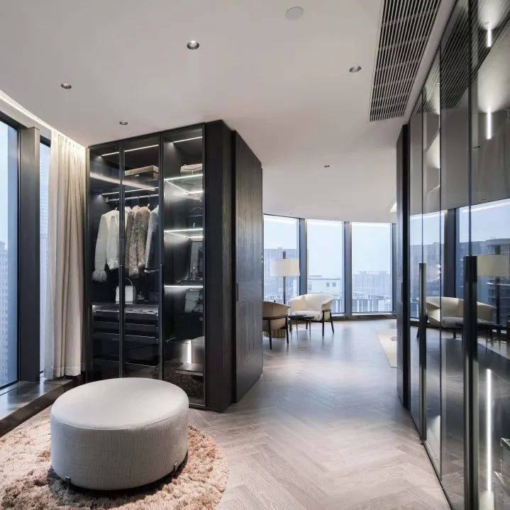 无论嘉格纳电器,劳芬、当代和卡德维的卫浴,还是摩根智能家居系统,都是至高规格的礼遇。从中岛台到墙面硬包+软包,全屋橱柜到衣帽区柜子,乃至于指纹保险柜,统统是交标。