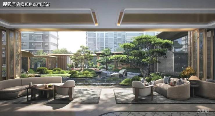 浮桥渡水,松、景、石、水交织,以家人的全时景观客厅为定位,让业主家人尽享东方诗意休闲时光。