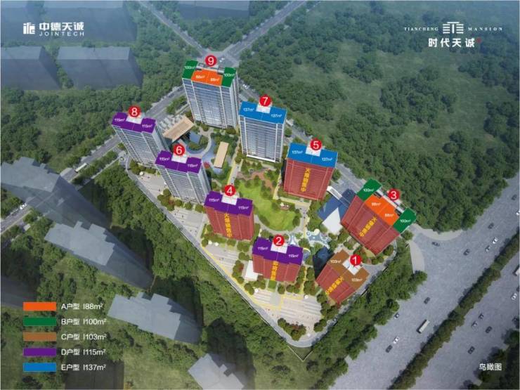 中德天诚商贸核心区大诚之作。总建面约54366㎡,容积率2.0,规划了9幢阔景小高层,总户数为352户。