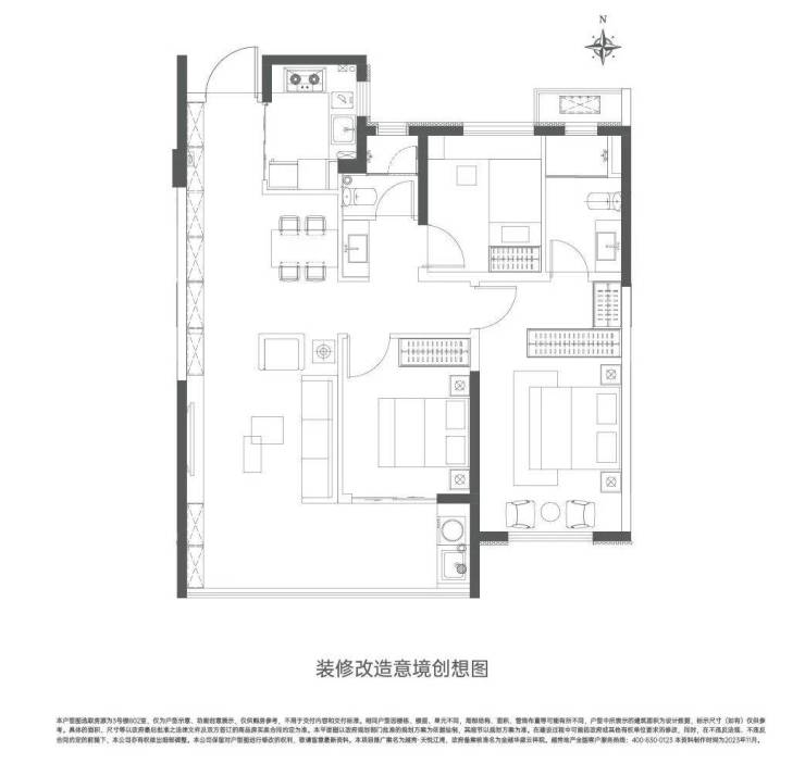 开间约7.4米,进深约7.2米,全景餐客厅,打造多变大空间超大弹性空间。