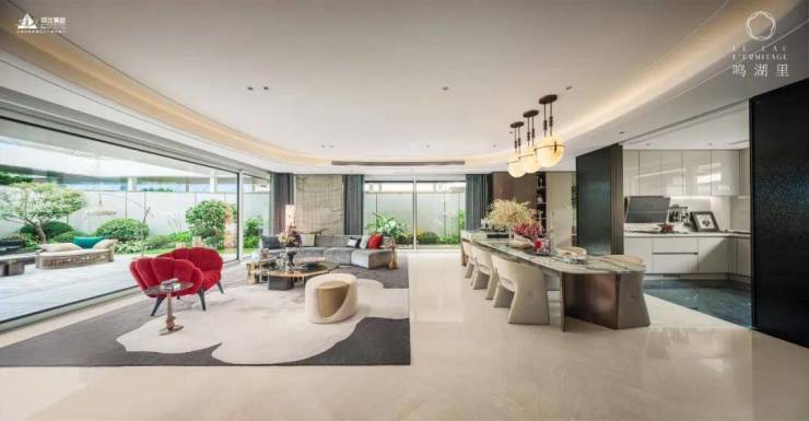 客厅270°环景长窗,把风景引入室内。每一个尺度都在彰显湘湖岸王者的回归。