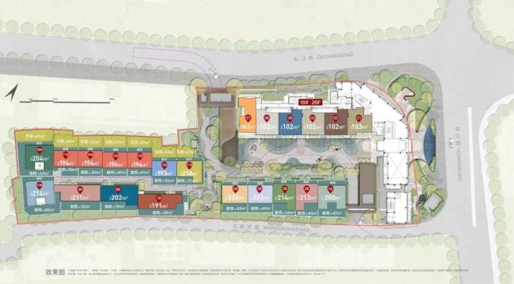地处内环静安苏河湾畔,四至范围, 东至:会文路; 西至:规划283-20地块,旁边是虬江大楼; 南至:王家宅路 ;北至:虬江路。小区容积率2.67,车位比例1:1.2,人车分流;高层就1幢26层高建筑,132套房源,风貌别墅16幢。