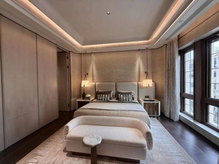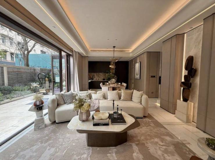 整个项目审美高度统一,从建筑、景观、户型全维度定制,云集大师设计团队:李益中团队负责室内设计,GAD团队负责建筑设计,梁志天操刀风貌产品,大区的施工则是由天华和德森完成。