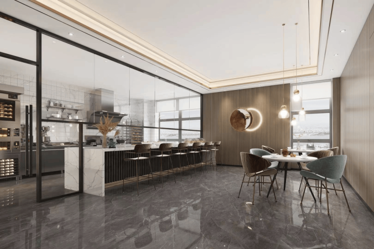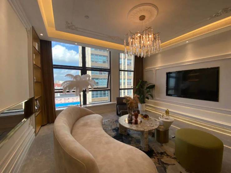 其中最大的特色,在每层设有功能区域,例如健身房,瑜伽室,早餐烘焙,自助迷你咖啡吧,儿童活动室,空中花园等等一系列的设施配套。