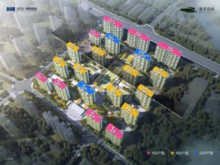 ·产品规划:建面约150㎡、185㎡、220㎡,户均约30-50㎡空中庭院