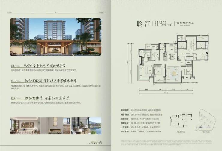 建筑面积约139-175㎡精装大四房,打造南北双阳台(部分户型)、约270°环幕飘窗主卧、独立电梯厅、纯粹全边套、独立储藏间(部分户型)等区域臻罕户型配置,融入法式精装风格,迭新改善品质前沿。