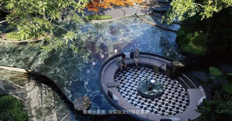 社区景观上,秉承“内外双公园、城市公园一体化”理念,打造出“一轴、一带、一环、九大花园空间”的生态品质社区。