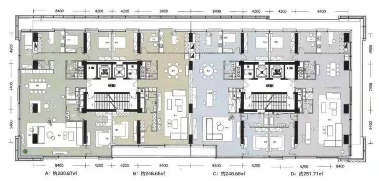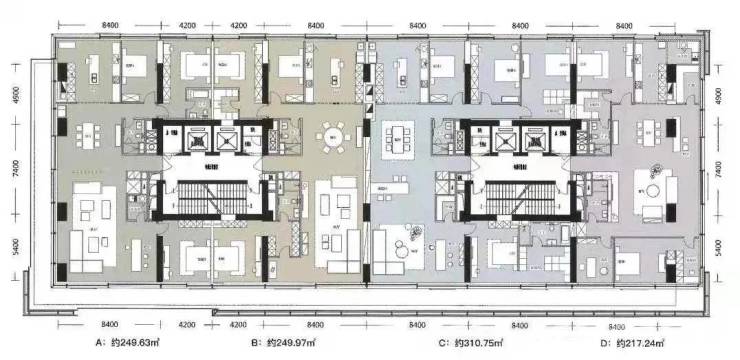 • 面 积:200.96㎡-𝟐𝟓𝟎.𝟏𝟒㎡(交付三房两厅三卫)