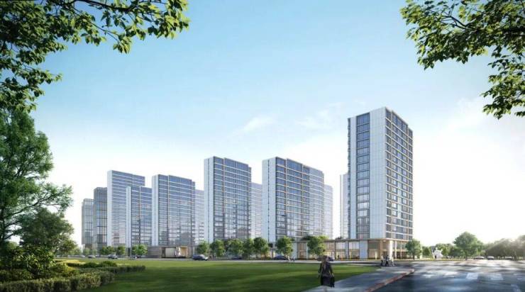 公建化的立面,四面铝板搭配大面积玻璃,阳台统一封包,底层的浅色天然石材还被打磨出弧线,脱去厚重外壳,轻盈洒脱。项目西侧直线约800米就是钱塘江,春来晴翠也在园区里编织了一幅山水画卷。