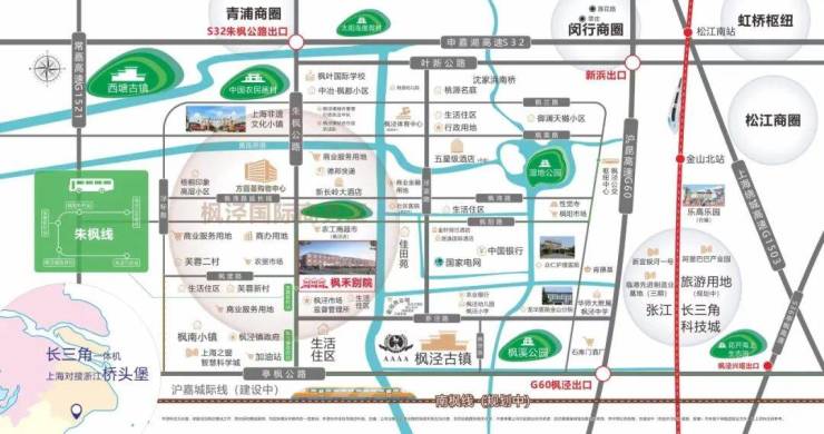 10.规划交通 带动升值—1)沪嘉城际铁路,嘉兴段已开建,上海段起点枫泾站,直达松江南与9号线对接。2)南枫线起点枫泾终点临港新城,中间经过奉贤会与15号线延伸段交汇,2025年开建,2030年通车